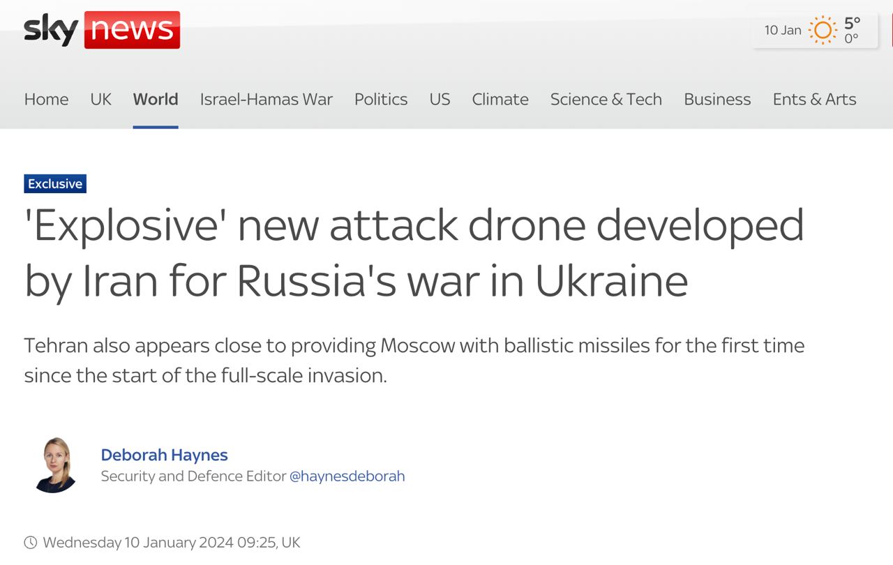 Украинский источник издания заявил, что сообщения о разработке нового типа дрона "скорее всего, правда", и что "есть огромные опасения по поводу возможных поставок упомянутых типов дронов".