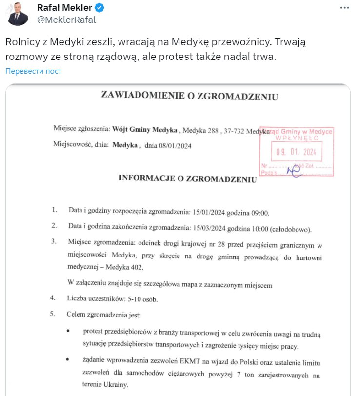 Также сообщалось, что Украина и Польша согласовали план действий по разблокированию границы. Заявлялось, что изменения в текущем соглашении о либерализации грузовых перевозок, чего требуют польские перевозчики, не обсуждаются.