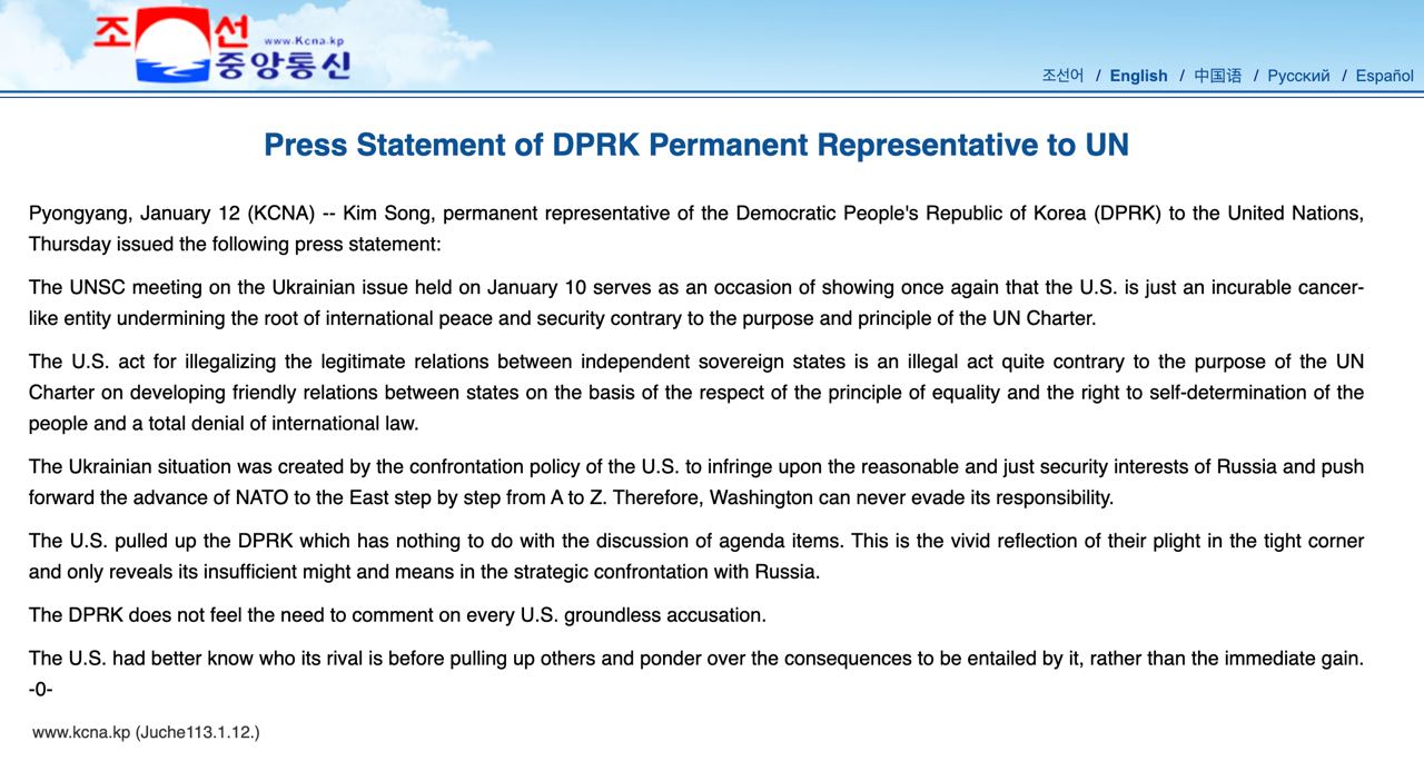 "КНДР не чувствует необходимости комментировать каждое необоснованное обвинение США", - заявил постпред КНДР при ООН Ким Сон.