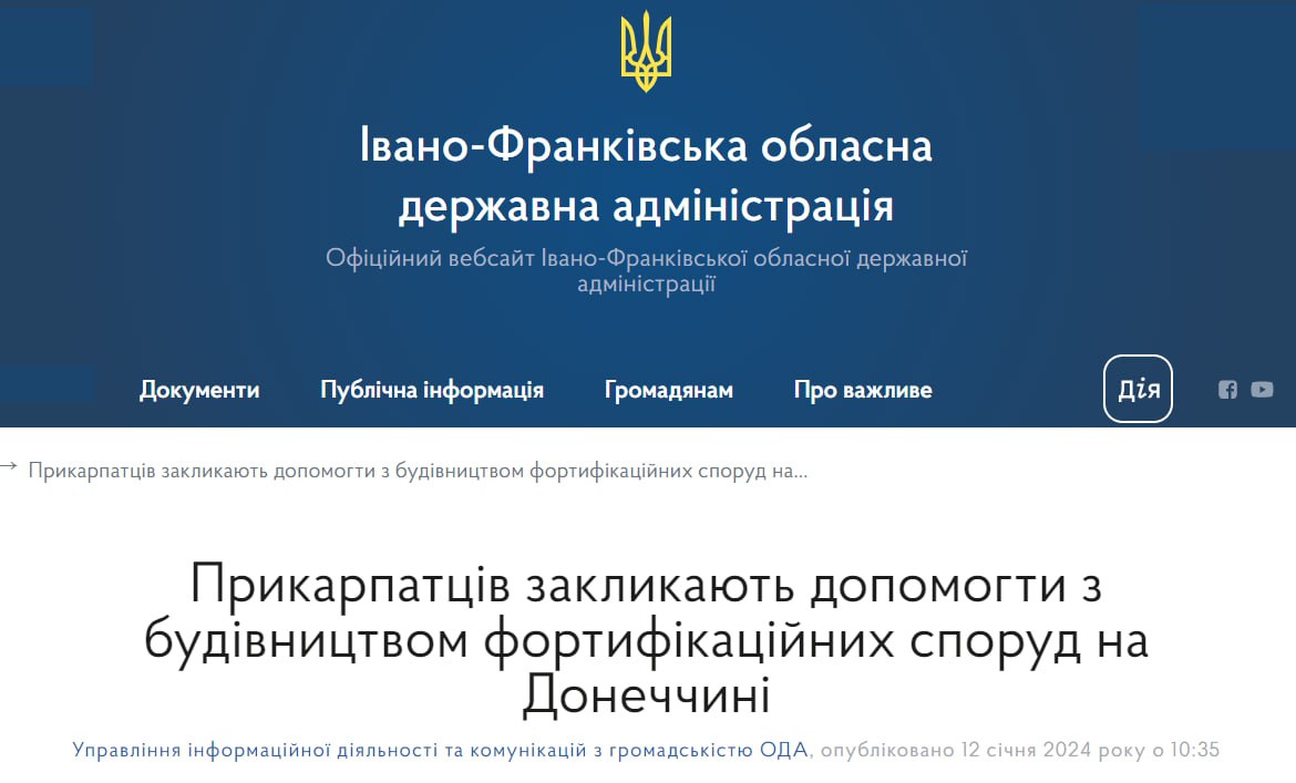 Жителям Прикарпатья предлагают работу по строительству фортификаций в Донецкой области в качестве отсрочки от мобилизации. Всего нужны 300 человек.