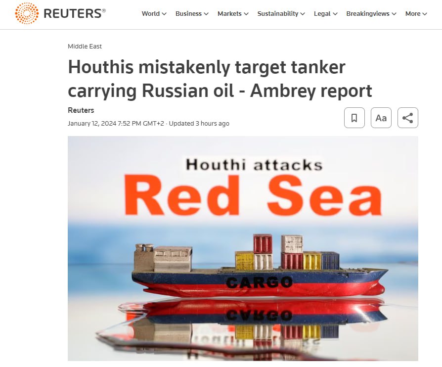 Напомним, в ночь с 11 на 12 января вооруженные силы США и Британии нанесли удары по контролируемой хуситами части Йемена. Вашингтон и Лондон объявили это ответом на нападения хуситов на корабли в Красном море (хуситы заявляют, что атакуют корабли, которые следуют в Израиль либо принадлежат израильтянам, в ответ на действия израильской армии в секторе Газа).