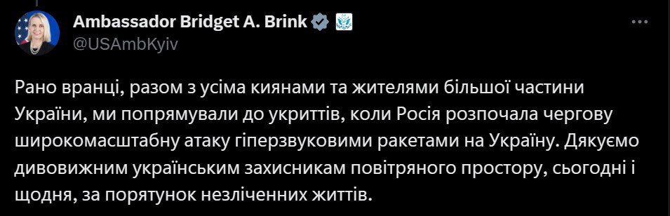 9.42 Посольство США в Киеве заявило, что этим утром его работники вынуждены были спускаться в укрытия из-за ракетной атаки.