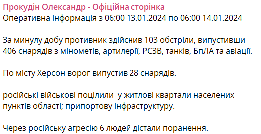 08:00 За минувшие сутки россияне совершили 103 обстрела Херсонской области, выпустив 406 снарядов из минометов, артиллерии, РСЗО, танков, БпЛА и авиации.