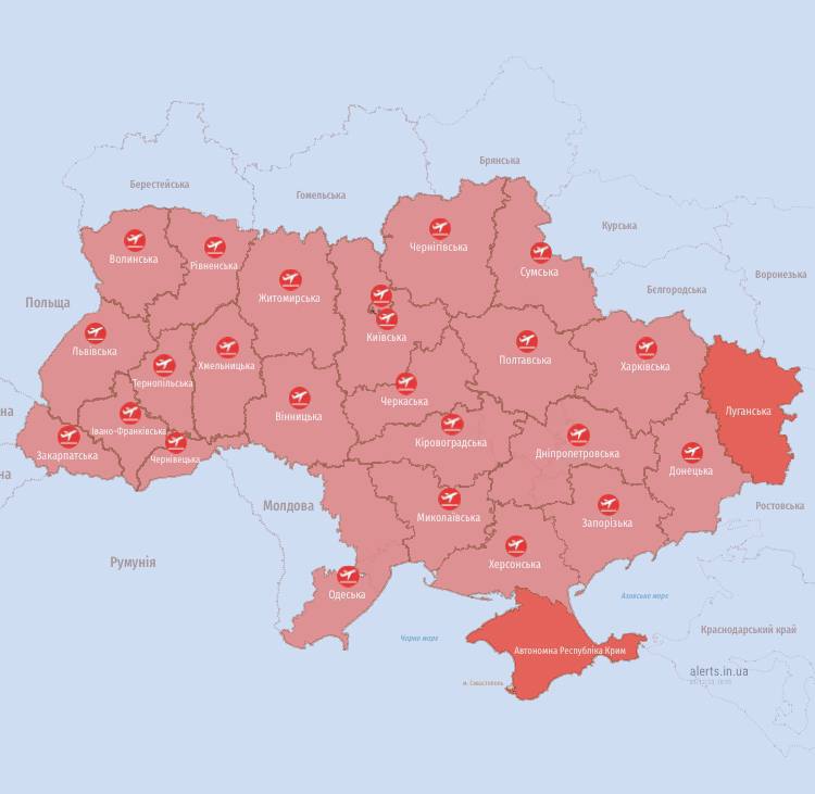 12:31 По всей Украине объявлена воздушная тревога. Зафиксирован взлет российского МиГ-31К, который является носителем "Кинжалов".