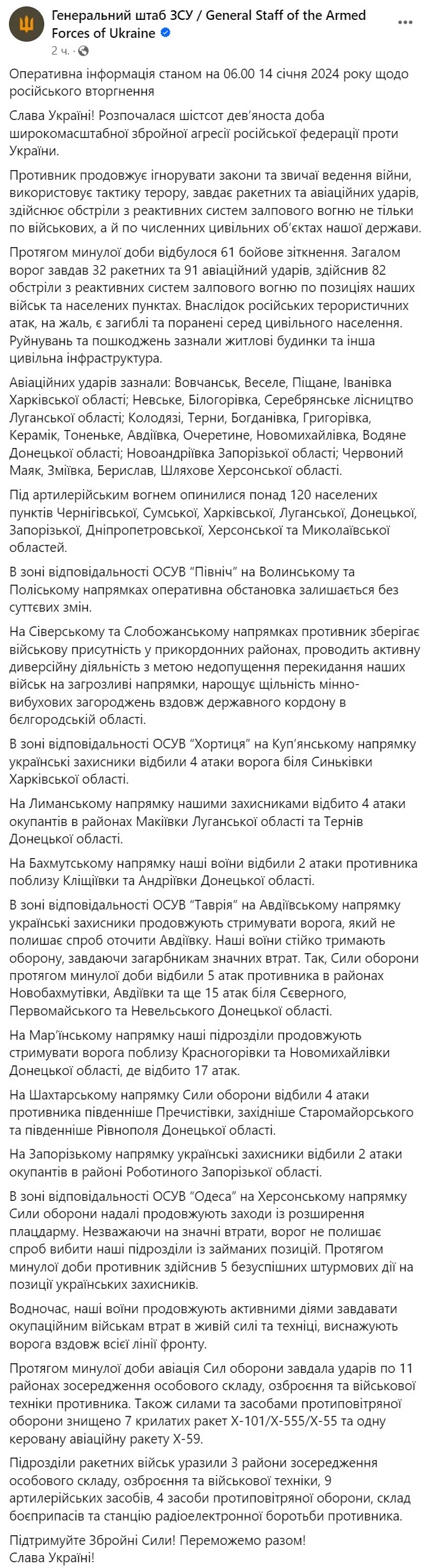 Война в Украине идет уже 690-й день. Мы следим за последними новостями и ключевыми событиями 14 января 2024 года в обновляемом онлайне