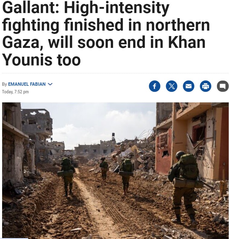 По словам Галанта, войска с меньшей интенсивностью проводят операции на севере Газы после разгрома всех батальонов ХАМАС в этом районе. Солдаты работают над поиском оставшихся объектов ХАМАС и уничтожением или захватом последних боевиков.