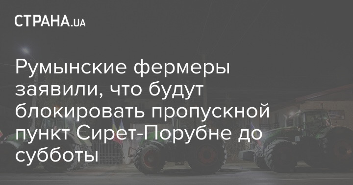 Румынские фермеры, которые блокируют пропускной пункт Сирет-Порубне заявили украинским перевозчикам, что намерены продлить блокаду до субботы, 20 января.