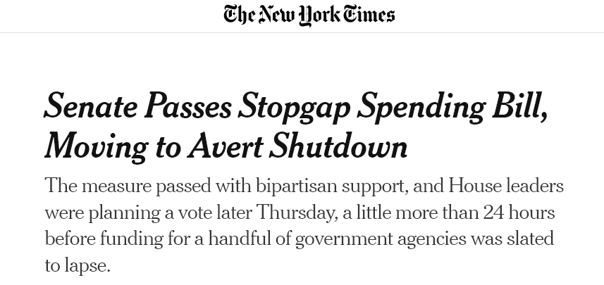Позже появилась информация, что законопроект о временном финансировании американского правительства прошел голосование и в Палате представителей. Теперь документ отправляется на подпись президенту США Джо Байдену.