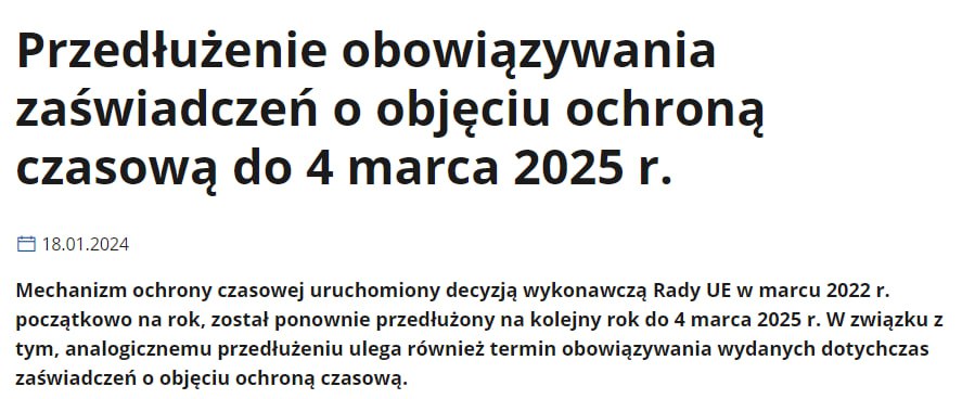 Это значит, что лицам, получившим от Управления по делам иностранцев свидетельство о временной защите, не нужно обращаться за новым сертификатом. Иностранцы могут продолжать использовать их в качестве документов на жительство, подтверждающих их легальный статус.