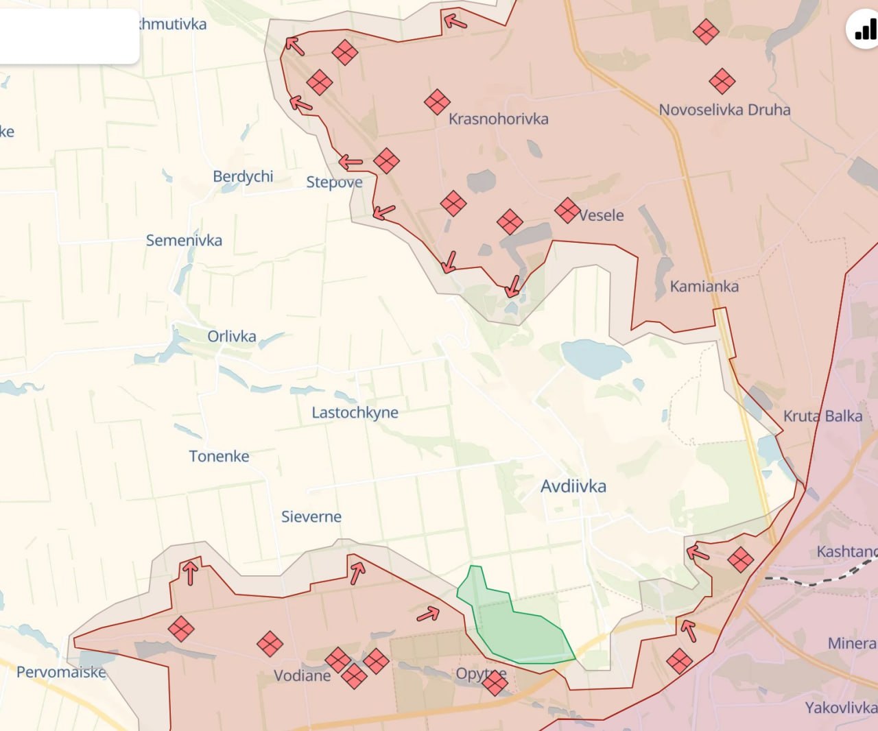 Российские паблики пишут, кроме прочего, о продвижении армии РФ со стороны Каменки (на северо-восток от Авдеевки) до начала улиц Колосова и Леваневского.