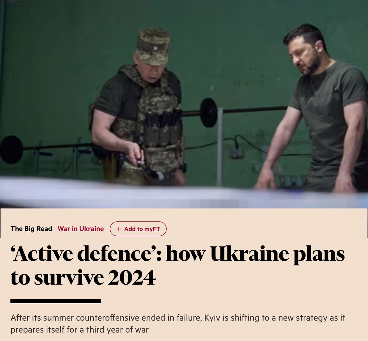 В связи с этим Украина переходит в стратегию "активной обороны" — удержание позиций с поиском слабых мест и дальними воздушными ударами. Это должно позволить Украине "нарастить свои силы" в этом году и подготовиться к 2025 году, "когда контрнаступление имело бы больше шансов".