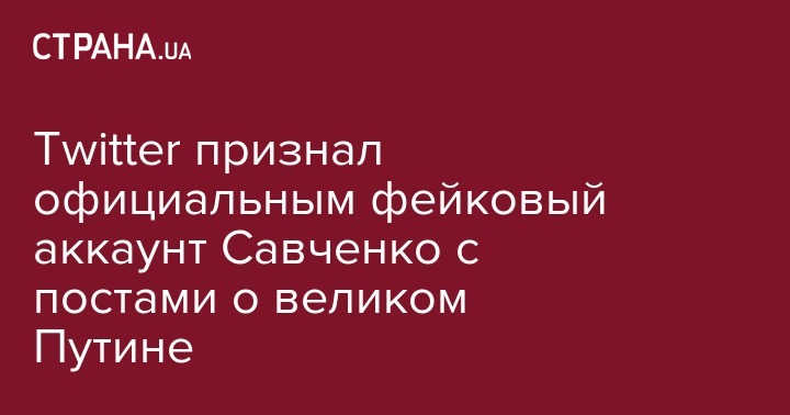 Twitter признал официальным фейковый аккаунт Савченко с постами о великом Путине