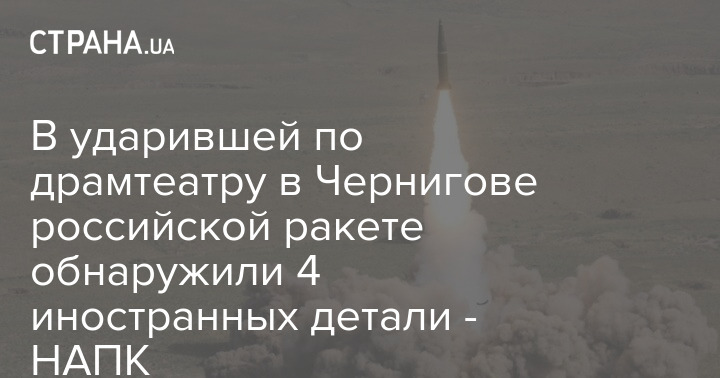 В ударившей по драмтеатру в Чернигове российской ракете обнаружили 4 иностранных детали - НАПК