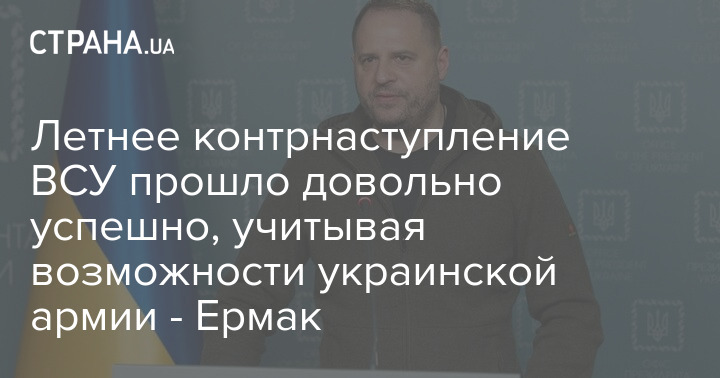 Летнее контрнаступление ВСУ прошло довольно успешно, учитывая возможности украинской армии - Ермак
