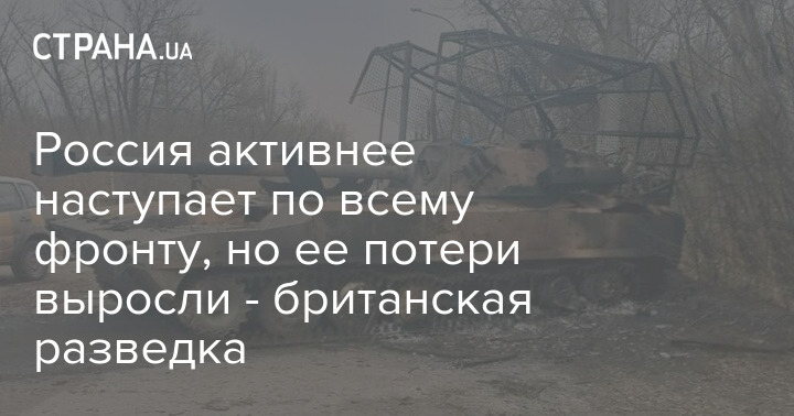 Британская разведка также отмечает, что за последние пять дней потери российской военной техники возросли на 88%, а количество уничтоженных танков РФ – на 95%. В то же время потери среди российских военнослужащих увеличились на 15%.