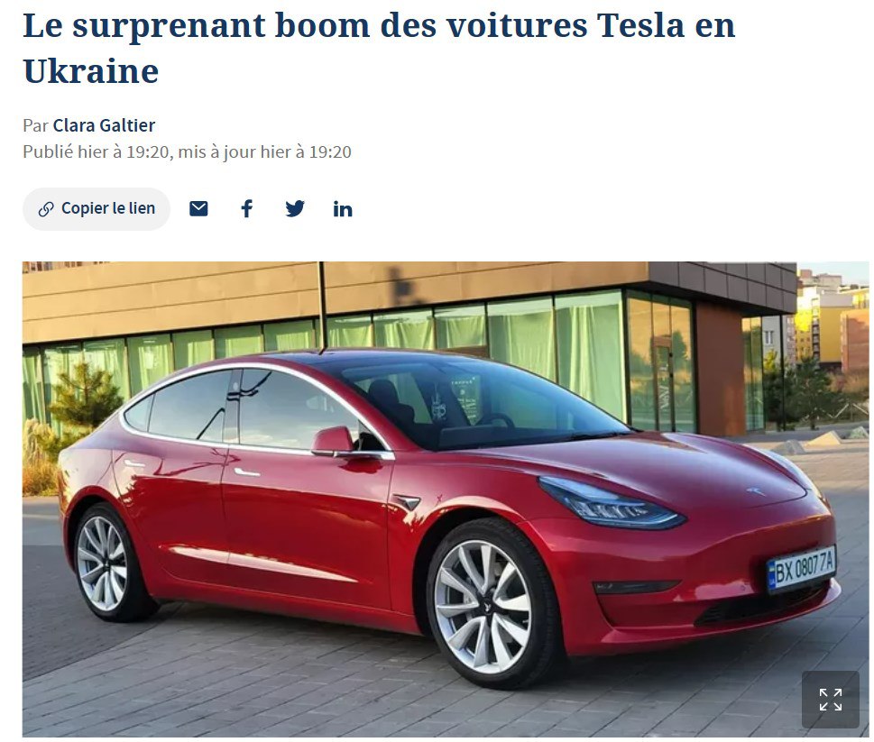 В Украине наблюдается "удивительный бум" на автомобили Tesla. Рост в сравнении с довоенным уровнем - примерно в десять раз.