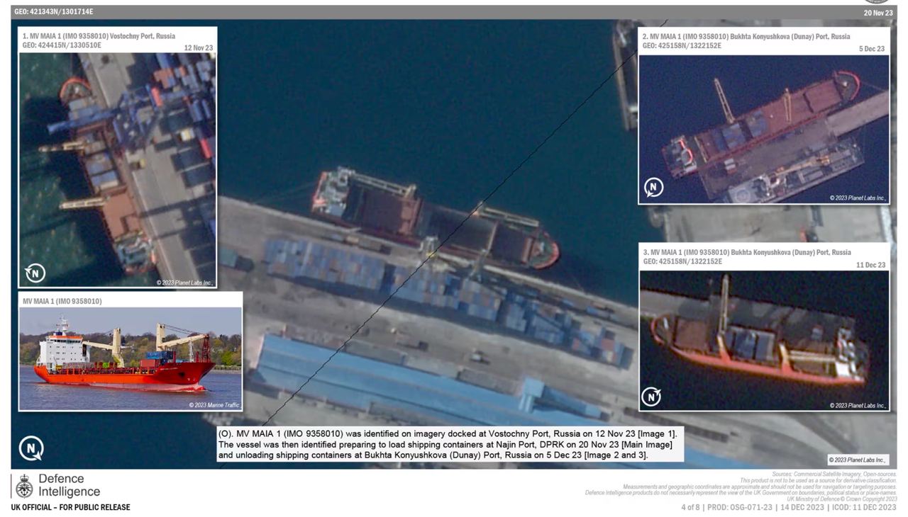 На снимках, сделанных с сентября по декабрь, видно, как три российских корабля загружают контейнеры в возрожденном северокорейском порту Наджин перед тем, как отправиться в российские порты на Дальнем Востоке.