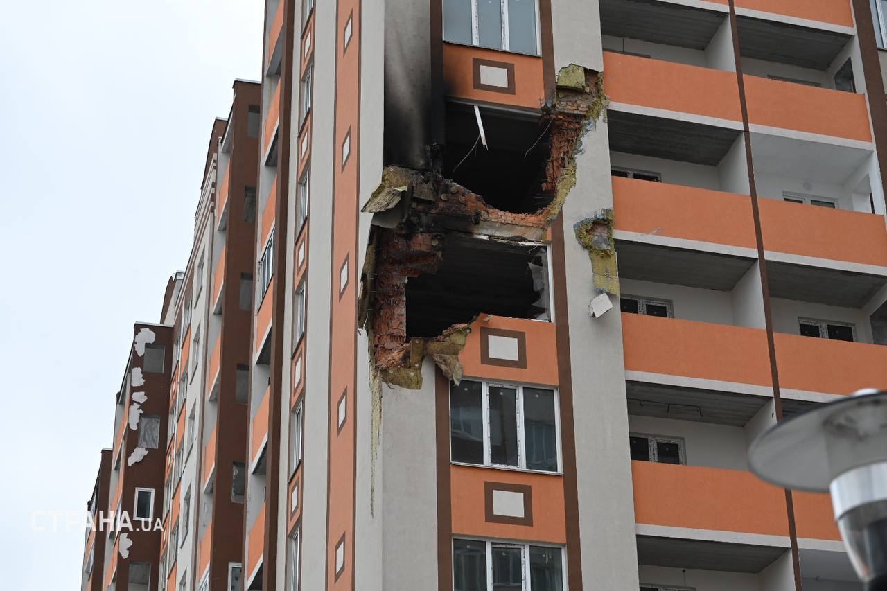 - в Соломенском районе в многоэтажке выбило окна, в нескольких квартирах произошло возгорание. Разрушено двухэтажное нежилое здание.