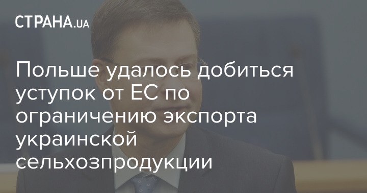 Польша добилась уступок от ЕС по ограничению экспорта украинской сельхозпродукции. Торговый комиссар ЕС Валдис Домбровскис заявил, что Брюссель начнет блокировать импорт из Украины, если рынок конкретной страны будет переполнен, что создаст риск снижения цен.