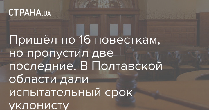 Пришёл по 16 повесткам, но пропустил две последние. В Полтавской области дали испытательный срок уклонисту