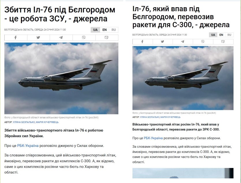 Другой вопрос, что источники этих медиа могли приписать Украине сбитие самолета ради поднятия боевого духа украинцев, а на самом деле его не сбивали.