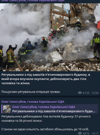 Вчера глава Харьковской ОВА сообщил, что после ракетной атаки "фактически нет целого квартала".