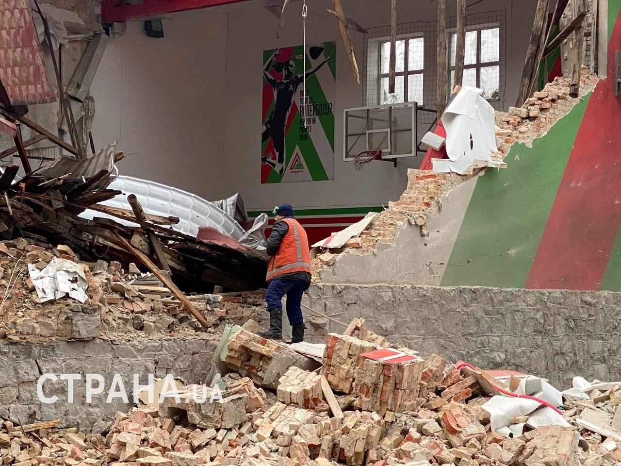14.40 В Киеве демонтируют разрушенное здание спорткомплекса "Локомотив", которое было повреждено во время атаки 23 января.