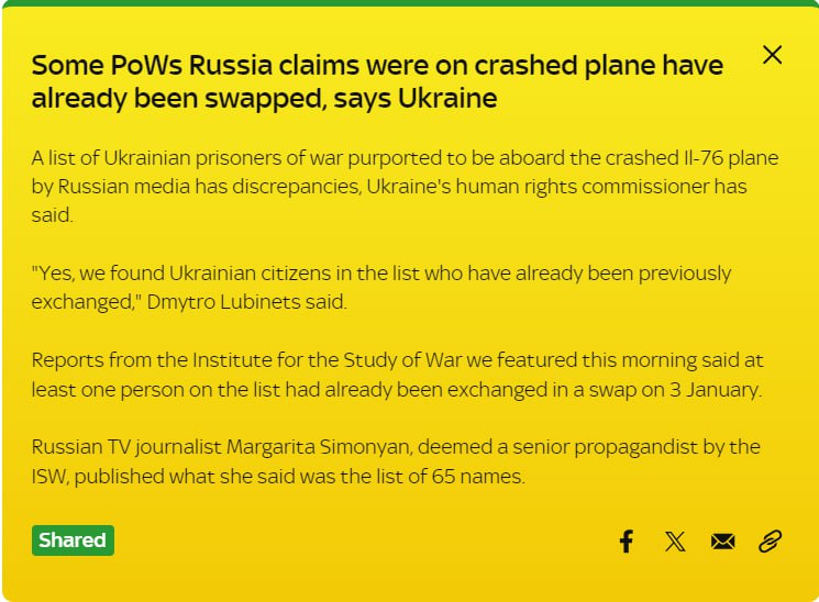 По утверждению россиян, на его борту было 65 украинских пленных. Украина этого не подтверждала, но заявляла, что обмен вчера готовился.