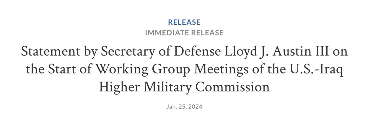 "В ближайшие дни США и власти Ирака начнут заседания рабочей группы Высшей военной комиссии США и Ирака (ВВК), дав старт процессу, который обе стороны обязались инициировать во время совместного американо-иракского диалога по сотрудничеству в области безопасности 7-8 августа 2023 г... Это обеспечит переход к долгосрочному двустороннему партнерству в области безопасности между Соединенными Штатами и Ираком", - сказано в сообщении.