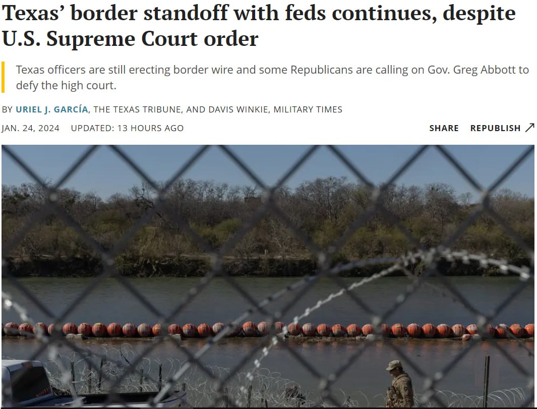 Верховный суд США разрешил федеральным властям эту стену убрать, после чего началось противостояние Вашингтона и властей Техаса. Техасская национальная гвардия продолжает возводить укрепления и не подпускает туда пограничников.