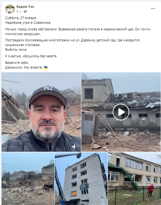 Российские военные в ночь на 27 января ударили ракетным ударом по Славянску Донецкой области.