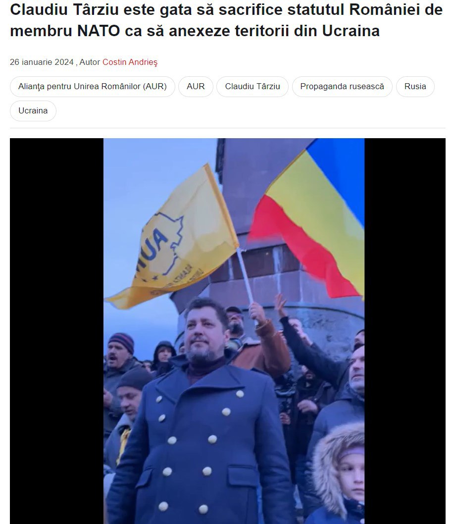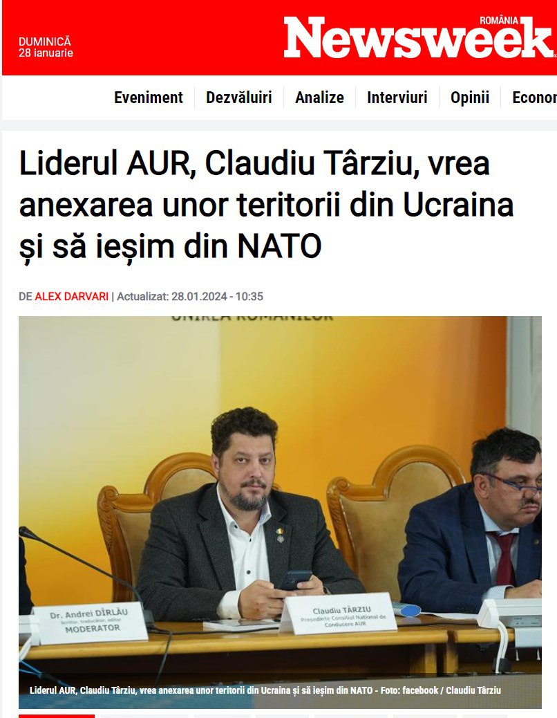 Выступая в городе Яссы, Клаудиу Тырзиу сказал, что "готов пожертвовать членством Румынии в НАТО, аннексировав территории Украины".
