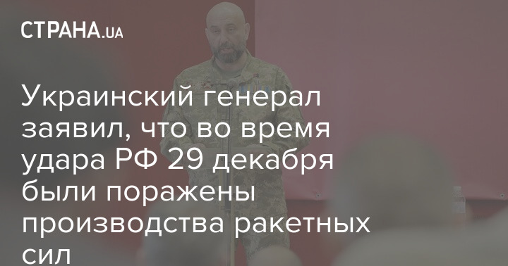 Украинский генерал заявил, что во время удара РФ 29 декабря были поражены производства ракетных сил