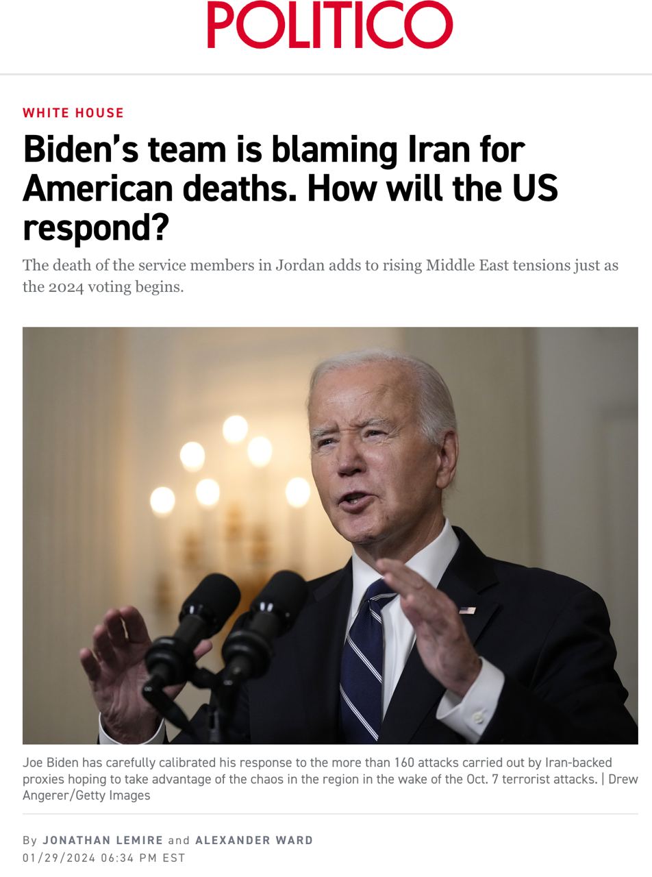 Американские чиновники заявили CNN, что ответ Байдена будет "мощным", но Вашингтон опасается спровоцировать более широкую эскалацию с Ираном.