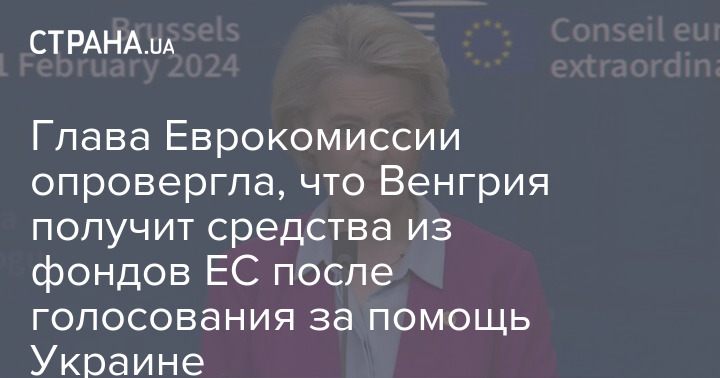 Глава Еврокомиссии Урсула фон дер Ляйен опровергла информацию, что для получения голоса Венгрии при голосовании за помощь Украине Будапешту пообещали разморозить деньги из фондов ЕС.