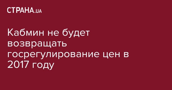 Кабмин не будет возвращать госрегулирование цен в 2017 году