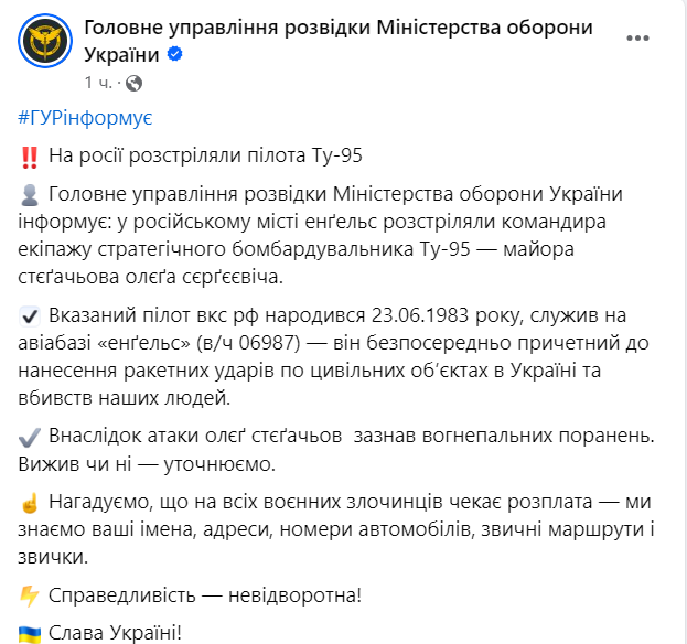 В Энгельсе расстреляли в командира Ту-95 Олега Стегачева. Фото: ГУР