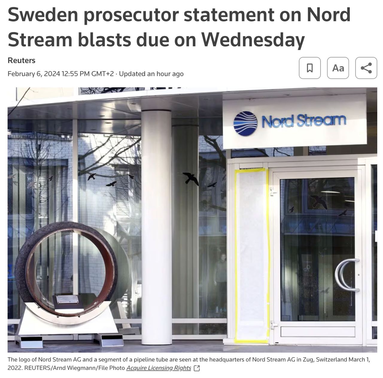 Шведская прокуратура намерена 7 февраля объявить о результатах расследования подрыва "Северного потока".