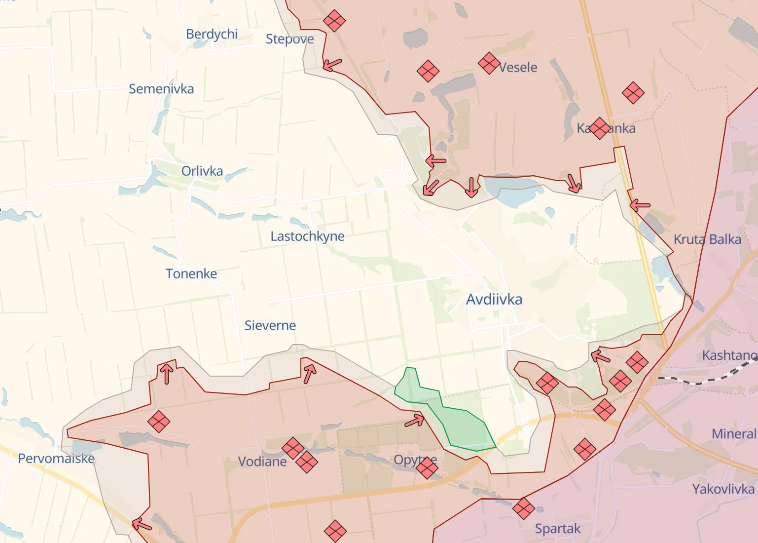 Армия РФ продолжает продвигаться на севере Авдеевки, сообщает украинский военный ресурс Deep State.
