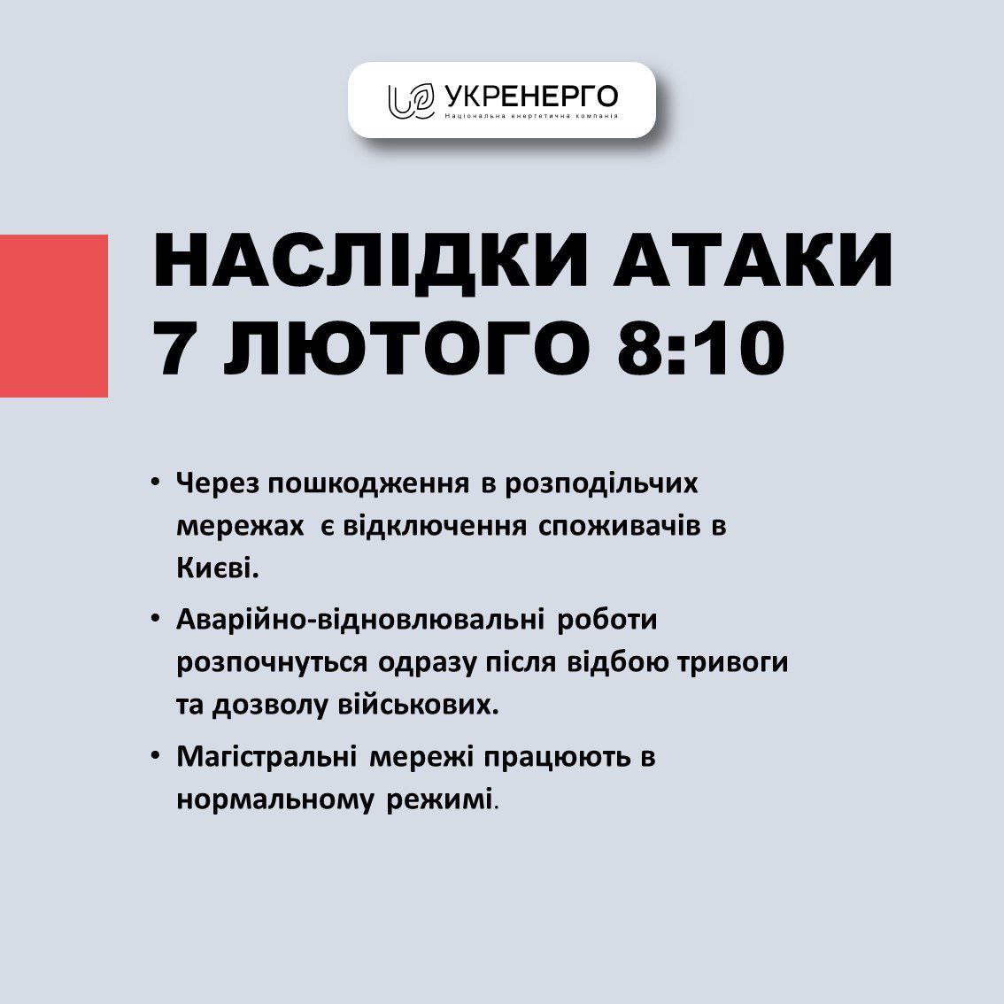 В среду, 7 февраля, в результате ракетной атаки в Киеве пропал свет у части потербителей.