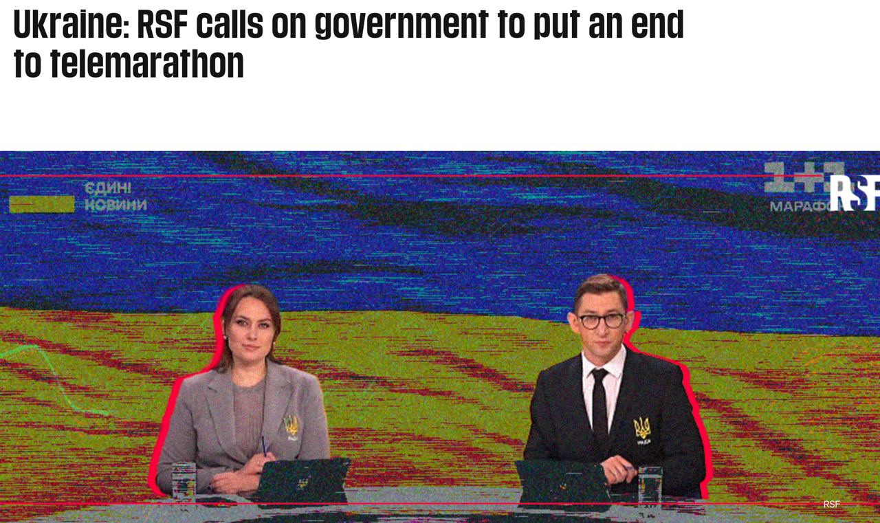 "Телемарафон был полезен и эффективен в борьбе с беспрецедентной волной российской дезинформации, охватившей страну в феврале 2022 года, но он устарел и, прежде всего, сейчас подрывает плюрализм СМИ", - заявила глава филиала "Репортеров" по Восточной Европе и Центральной Азии Жанна Кавелье.