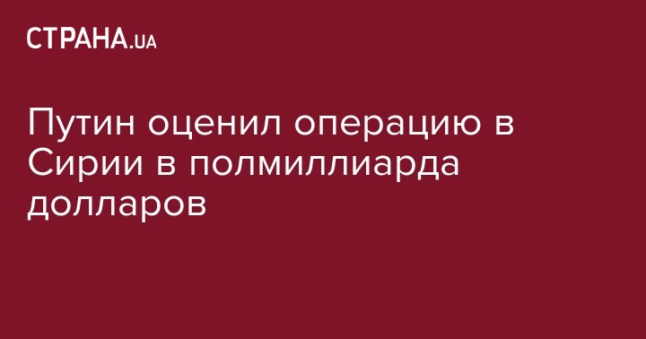Сегодня, 17 марта, на встрече с российскими военными, принимавшими участие в кампании на Ближнем Востоке, президент России назвал сумму, в которую операция в Сирии обошлась госказне. Об этом сообщает "Интерфакс-Украина".