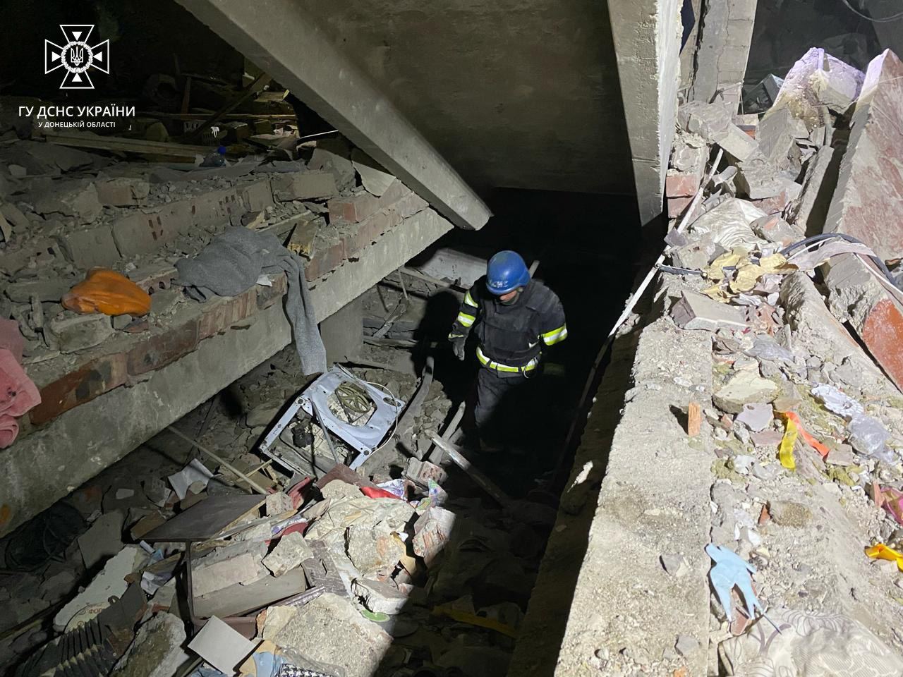 09:51 В Селидово из-под завалов разрушенного трехэтажного жилого дома спасли трех человек.