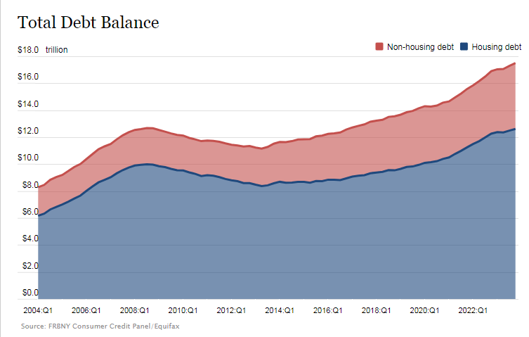 По итогам 2023 года задолженность американских домохозяйств достигла нового исторического рекорда и составляет 17,5 триллионов долларов.