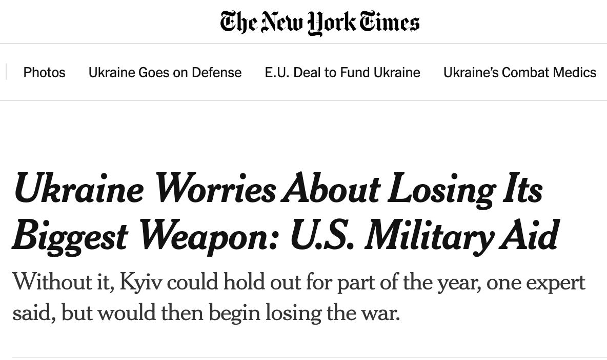 Украина "не будет внезапно разгромлена" без американской помощи, "но деградация ее сил будет неумолимой".