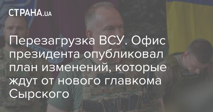 Офис президента (ОП) опубликовал перечень изменений в ВСУ, которые ожидает Владимир Зеленский после назначения нового главкома Вооруженных сил Украины Александра Сырского.
