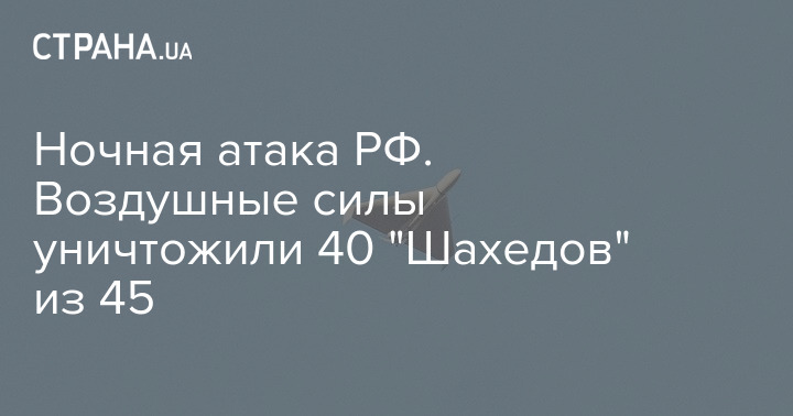 Сегодня ночью россияне нанесли удар 45-ю ударными БПЛА типа "Shahed-136/131". Силами ПВО были уничтожены 40 беспилотников.