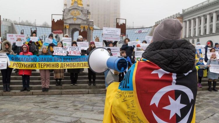 В Киеве семьи военных, которые сейчас находятся на фронте, в очередной раз вышли на митинг с требованием демобилизовать их родных.