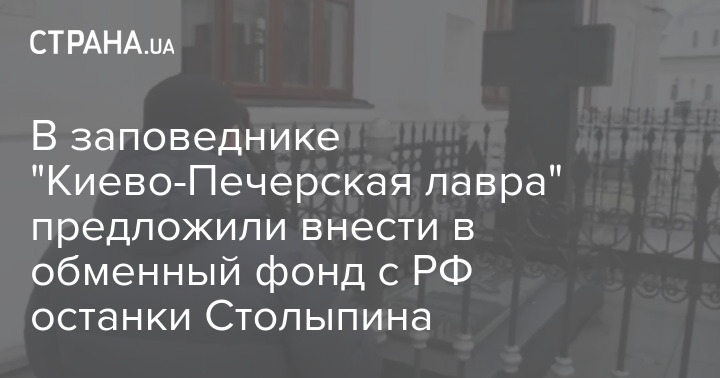 Директор государственного музея-заповедника "Киево-Печерская лавра" Максим Остапенко заявил, что пора начинать общественное обсуждение о том, что нужно делать с захороненными на территории лавры останками убитого в Киеве в 1911 году премьер-министра Российской империи Петра Столыпина. Остапенко считает, что их можно ввести в "обменный фонд" с Россией.