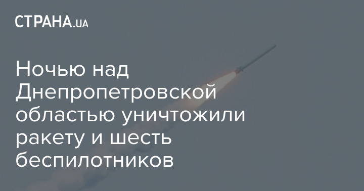 Ночью над Новомосковским районом Днепропетровской области уничтожили ракету. Над Павлоградским – 6 беспилотников.